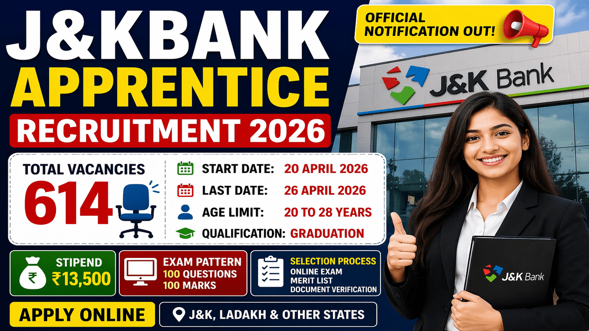 Jammu and Kashmir Bank recently issued a notification on April 17, 2026, announcing vacancies for 614 posts; notably, this presents a highly promising opportunity for prospective applicants.