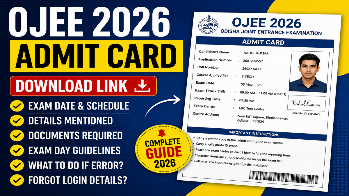 - Note: Admit card download link homepage par “OJEE Admit Card 2026” ke naam se available hota hai
